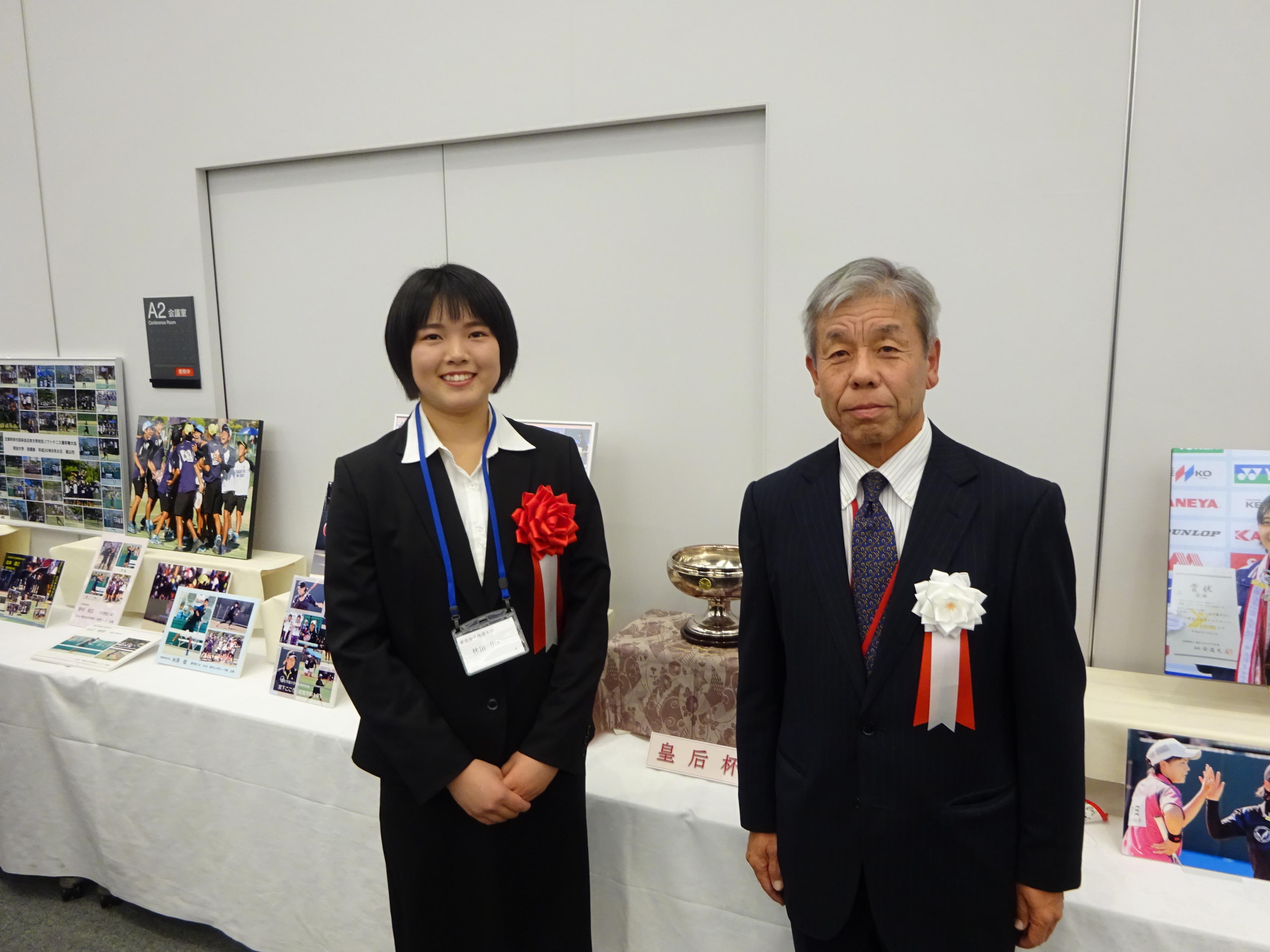 特別表彰 林田リコ選手(東京女子体育大学) 重田祝賀会実行委員長より記念の盾が授与される